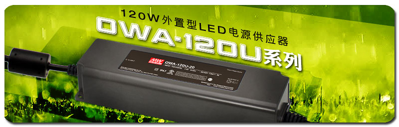 OWA-60U(60W)及OWA-90U(90W),是以”隨插即用”為特色之外置型LED電源供應器。為了提升產(chǎn)品應用范圍,明緯將OWA家族最高瓦數(shù)向上推升至120W,推出了OWA-120U系列。OWA-120U全系列取得UL8750成品類安規(guī)認證,對采用標準兩極美式插座之地區(qū)且設計有電源連接埠之LED照明系統(tǒng)為非常理想之電源供應器。OWA-120U提供12V~54V等九種不同輸出電壓之機型,且各機型皆有”定電壓(C.V.)+定電流(C.C.)”兩種輸出模式,可使用於各式LED照明應用;機體內部灌滿導熱矽膠,且電源本體具有IP67防護等級,使得OWA-120U可工作於高塵、高濕氣之環(huán)境。適合的應用包含LED裝飾照明、LED室內照明及LED辦公室照明等。
