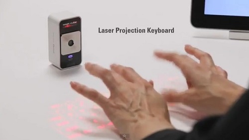 Celluon Magic Cube 是一款通過激光影射在桌面的虛擬鍵盤及鼠標(biāo),簡約的 QWERTY 布局,沒有數(shù)字鍵盤,每分鐘最多能支持 350 個字符的輸入。投影芯片會跟蹤人體手指動作,分辨出輸入文字或是滑動鼠標(biāo)操作。需要使用 Micro USB 接線進(jìn)行充電、支持藍(lán)牙 2.0 HID 配對。我們可以將它連接在臺式機(jī)、筆記本電腦、iPad、iPhone 和帶有藍(lán)牙 HID 功能的安卓設(shè)備上,即插即用,且小巧的體積很方便攜帶,裝在兜里就能帶走了。