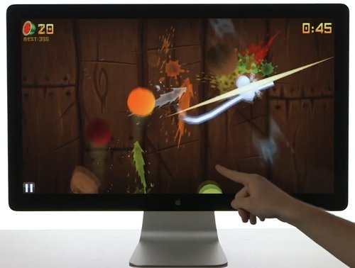 Leap 看上去只有一包口香糖的大小,僅由傳感器和攝像頭兩部分組成。Leap 沒有 Kinect 高昂的售價,也不需要額外購買 XBOX,更不需要足夠大的室內(nèi)空間,但 Leap Motion 的人卻自稱精確度是 Kinect 的 200 倍,可見對產(chǎn)品的信心。Leap 的操作很簡單,USB 連接電腦后,傳感器上方會創(chuàng)造出一個 4 立方英尺的空間,將手置于其中,然后就可以進(jìn)行多種手勢操作了,顯然這樣切水果的方式要比在觸屏上玩耍更有樂趣。另外 Leap Motion 專門為開發(fā)者提供了 SDK,以便于今后有更多適用的 App。