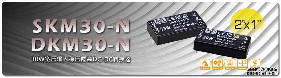 明緯SKM30系列是一款2〞x 1 〞尺寸、 2:1輸入DC/DC轉(zhuǎn)換器,上市已10年之久,為滿足直流更寬壓輸入需求,新推出了同尺寸4:1輸入的單組輸出SKM30-N及雙組輸出DKM30-N系列。